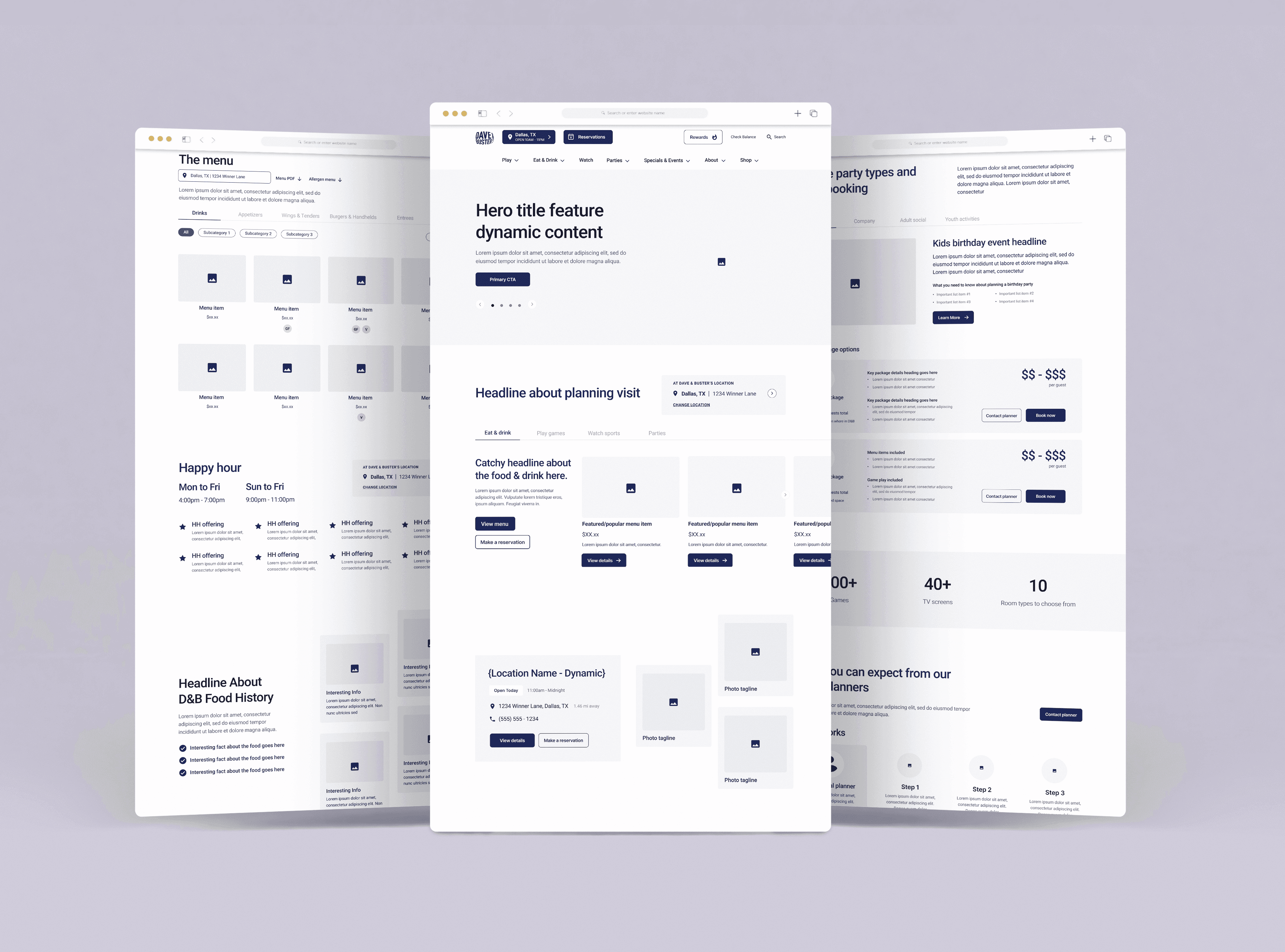 A full re-design on Dave & Busters website that creates a fun user experience while honing on brand identity.