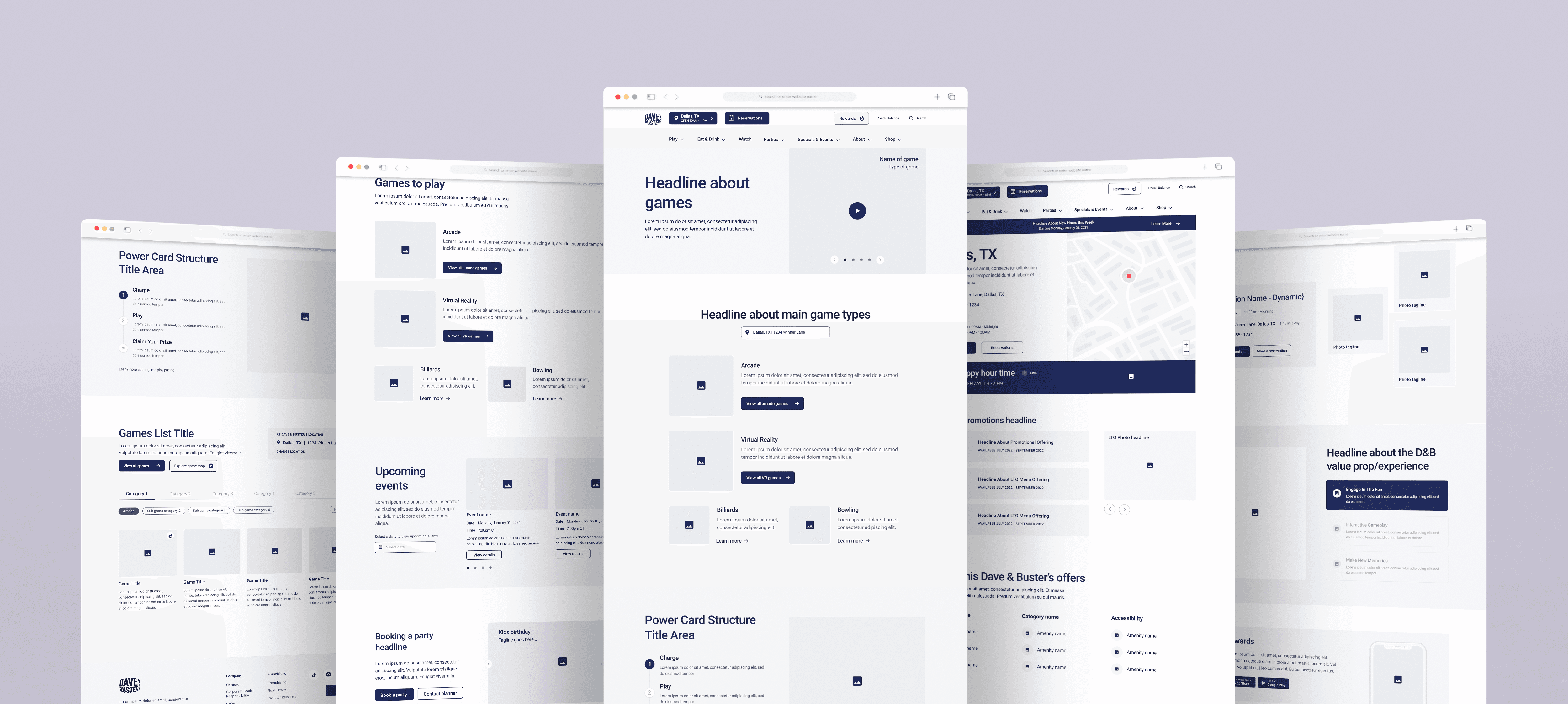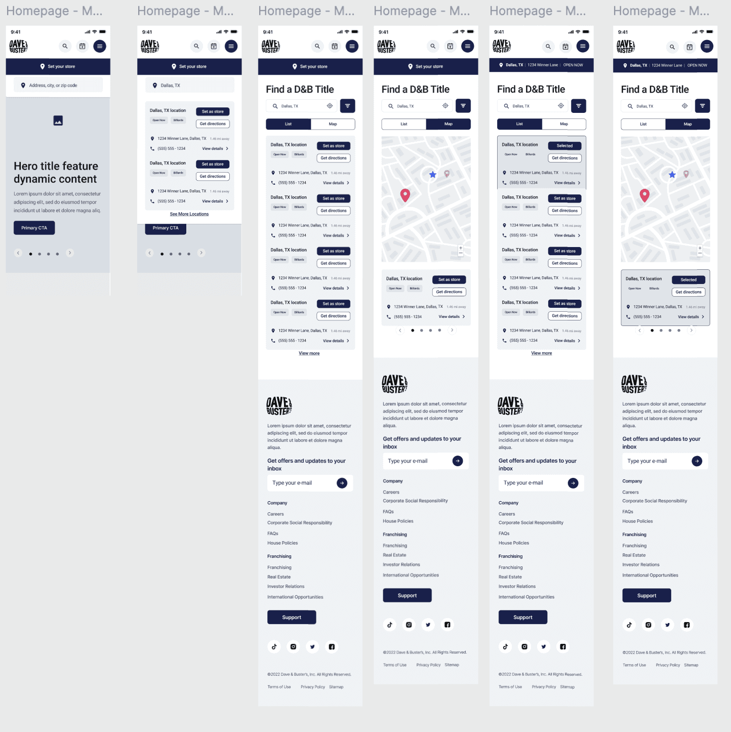 I created all the app pages mockups, incorporating the right design elements such as typography, color, and iconography. I also included captivating and visually appealing placeholders, and developed all the necessary components and elements. The goal was to demonstrate the final Dave & Busters web and mobile site in as much detail as possible. Below is a snippet of the designs.