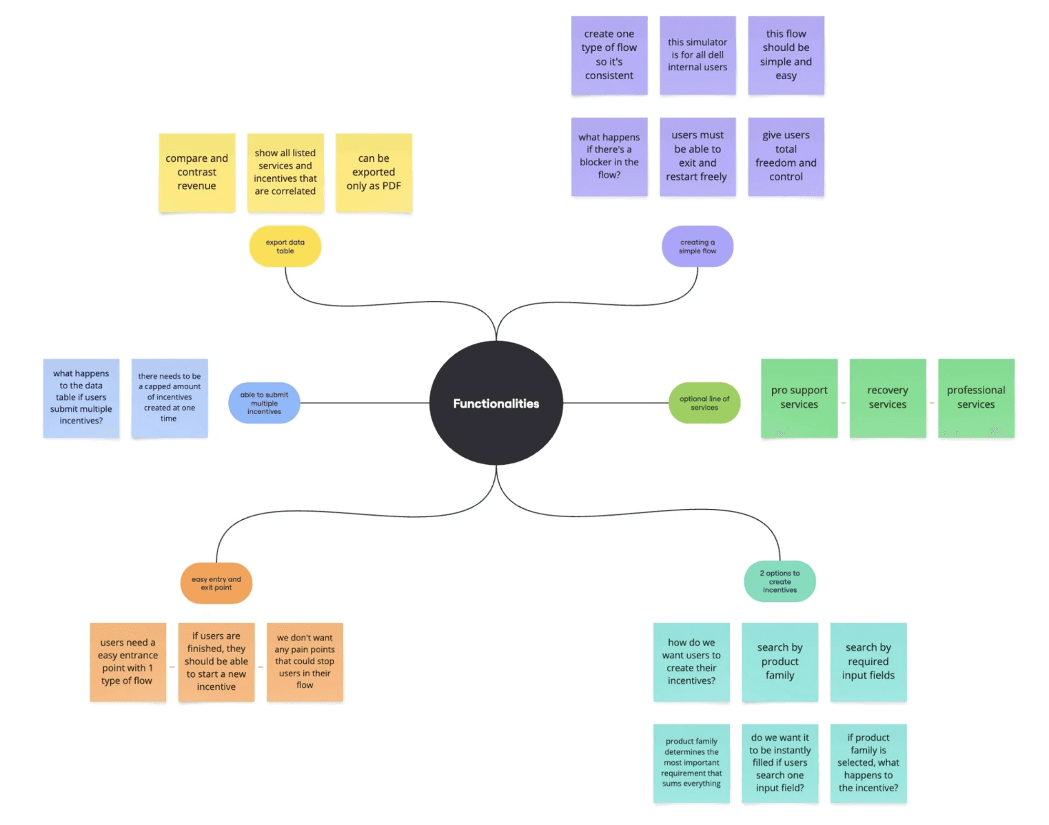 With referencing one of Dell's incentives portal, I gathered my thoughts by creating a list of requirements and notes that were shared from the client and created a brainstorming map.